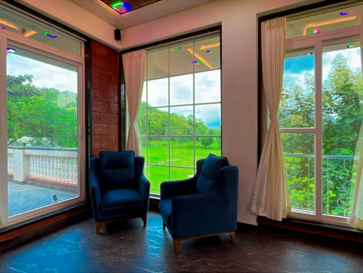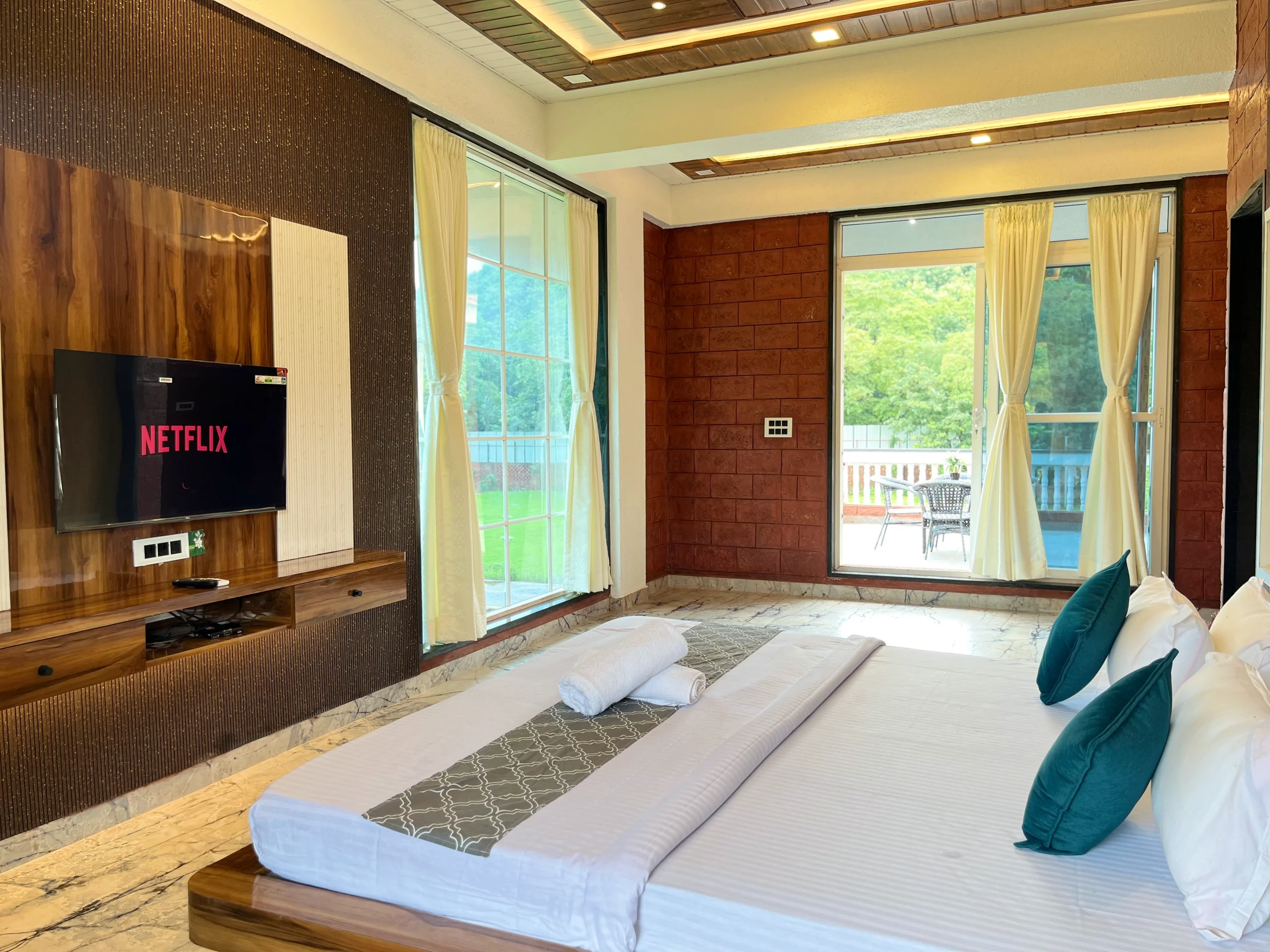 Selborne Elite 8 BHK Villa – An opulent riverside escape featuring a private pool, lush lawn, and elegant spaces, perfect for luxury stays and memorable group gatherings.