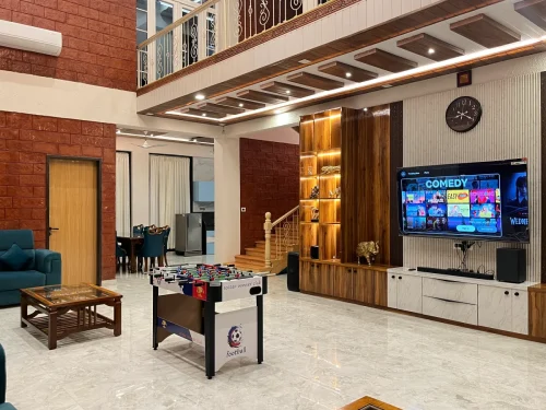 - Amenities: Air conditioning, Balcony, Dining area, Flat-screen TV, Foosball Table, Free parking, Free WiFi, JBL Bluetooth Party Speaker, Kids Play Equipment Garden, Outdoor Barbecue Facillity, Outdoor Private Pool, Outdoor Rain Dance, Pool Table, Terrace